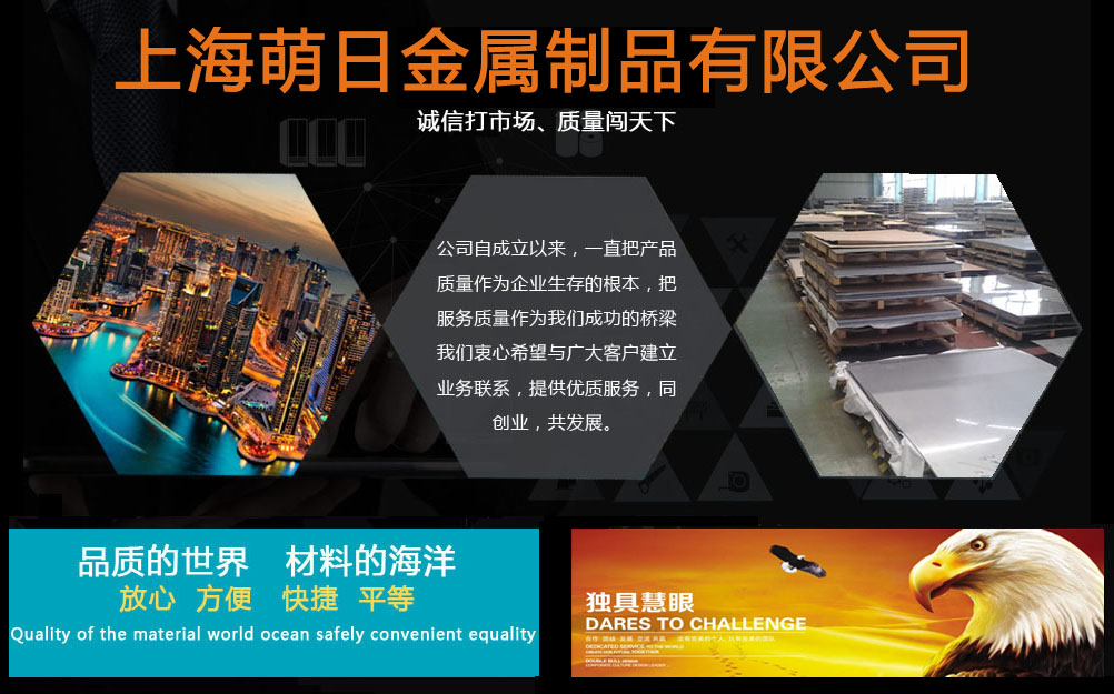 上海萌日金屬制品有限公司一直致力于為國內各大中型國有企業,外資企業,民營獨資企業,模具制造企業,機械加工企業,石油化工企業及器械企業等供應各種特種鋼材,進口/國產鋁合金,不銹鋼,合金結構鋼,42CrMo鋼板,35CrMo鋼板,40Cr鋼板,合金圓鋼,中厚板,鍛件,法蘭,鋼帶,軸承鋼,易切鋼,不銹圓鋼,合金管,矩形鋁管,無縫鋁管,鋁管,工業鋁管進口及國產方胚/鋼錠/鋁錠,應用于機械,機電,造船,工程,煤礦,紡織,電力,鍋爐, 汽車工業等各個領域。我公司可以根據客戶對特殊材料的要求進行材料和產品的定制,可按ISO,ANSI,JIS,DIN,GB等標準定制,我們將本著"誠實守信,合作共贏,長期合作"的理念與新老客戶一起進步發展。